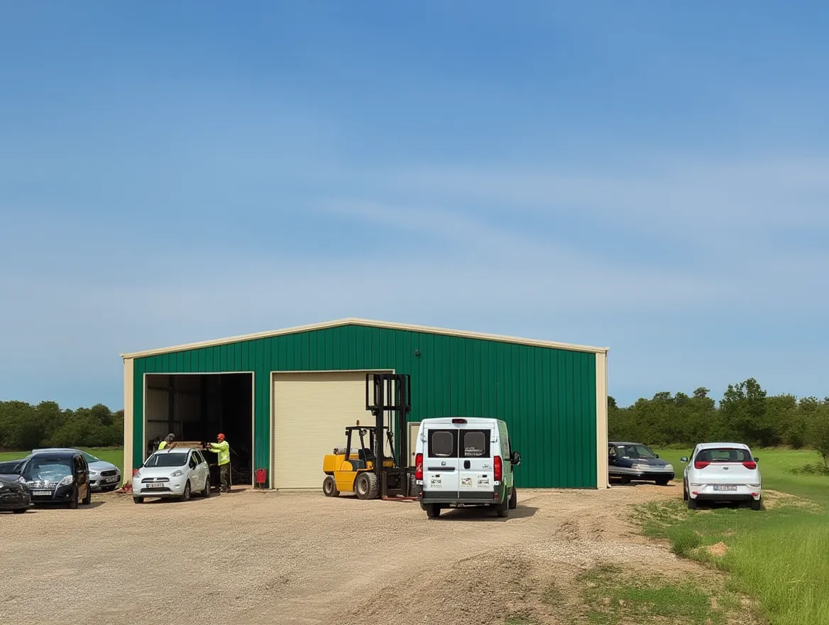 Обустройство слесарных или столярных цехов с отдельной зоной хранения материалов и помещением для персонала. Предусмотрено место для оборудования и готовой продукции.